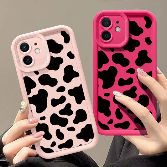 Blue and Pink Silicon Cow Print Case For iPhone 16e 16 15 14 13 12 11 Pro Max Plus XR XS 8 7