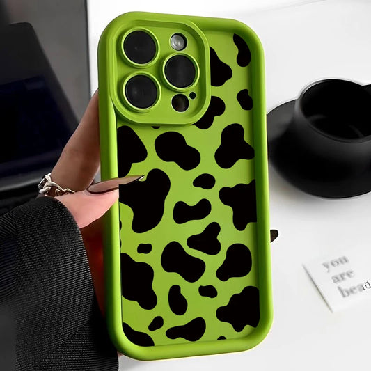 Coffee, Green and Wine Red - Silicon Cow Print Case For iPhone 16e 16 15 14 13 12 11 Pro Max Plus XR XS 8 7